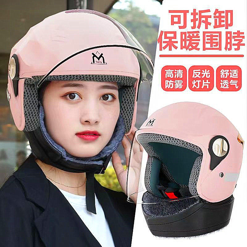 营缆头盔电动车女士3c认证保暖防风可爱安全帽半盔摩托车四季通用