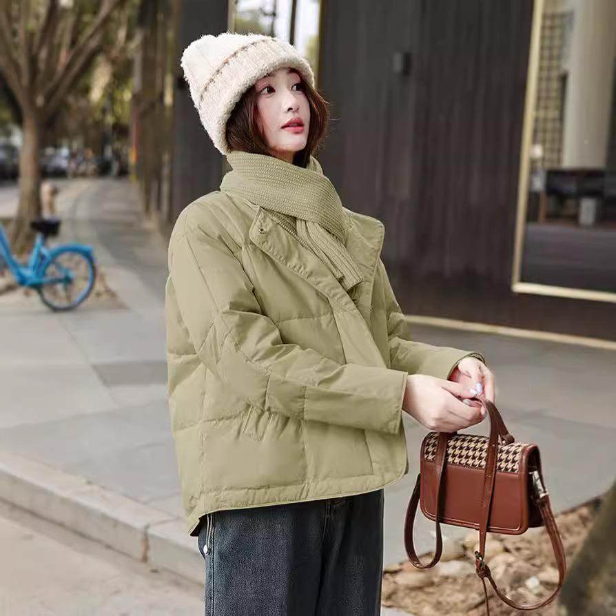 OU6737韩季新款装女版面包服外套冬女式保暖时尚羽绒服配围巾