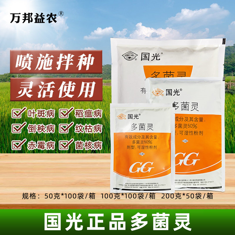 国光50%多菌灵叶斑病纹枯病赤霉病果树通用多灵菌农药杀菌剂正品