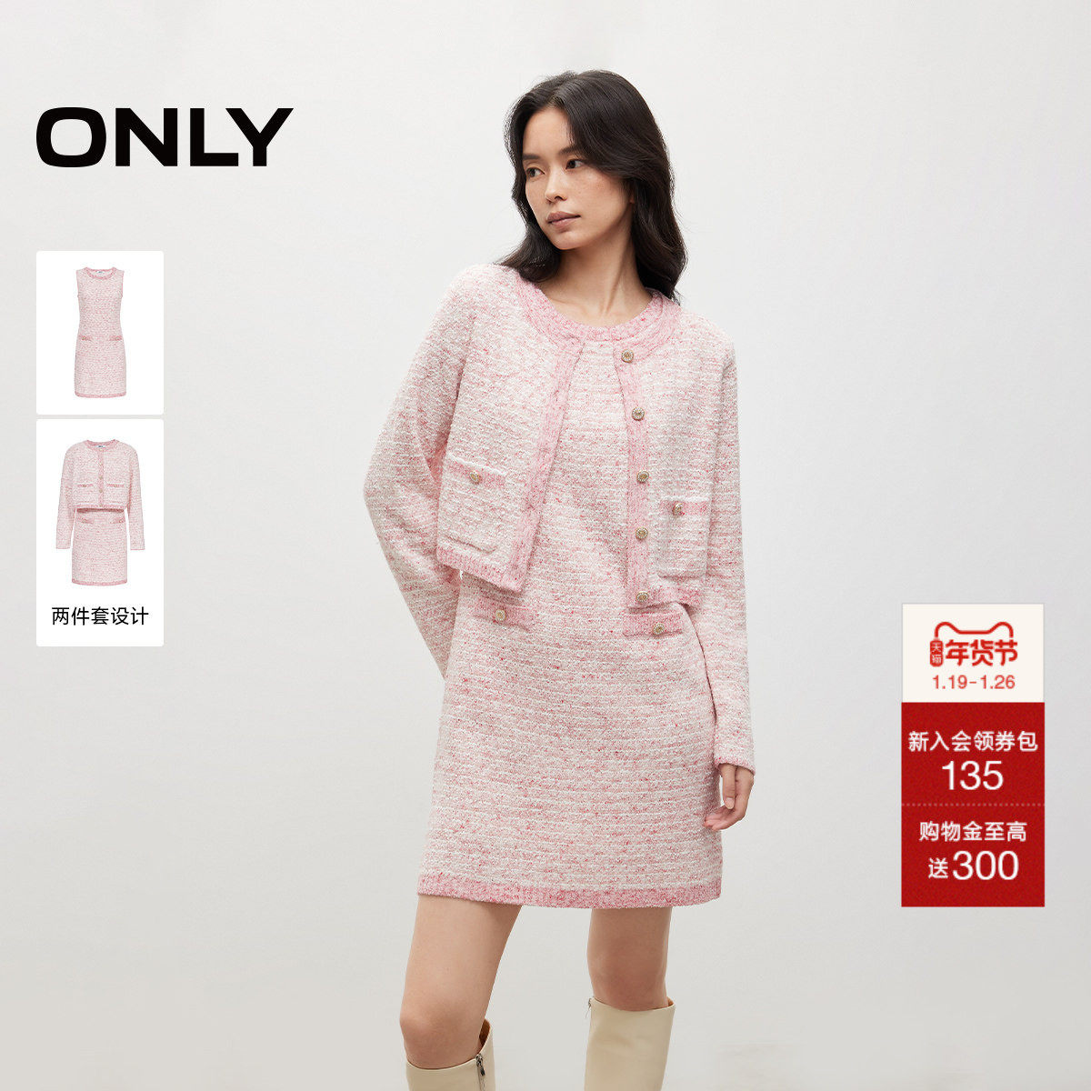 ONLY2025冬季新款重工优雅撞色精致纽扣小香风短裙套装连衣裙女