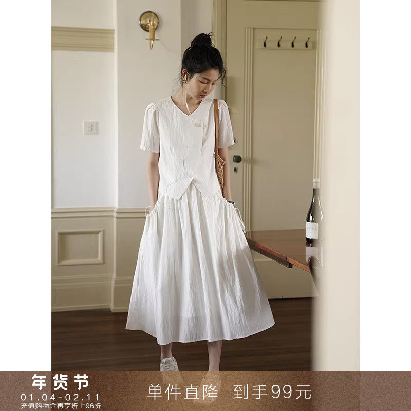【到手99元】邂逅夏日 设计感短袖宽松衬衫套装上衣长裙连衣裙女
