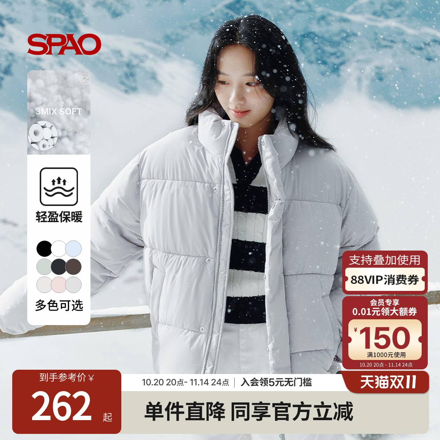 SPAO韩国同款25年冬季新品woodie女量感暖核立领面包棉服