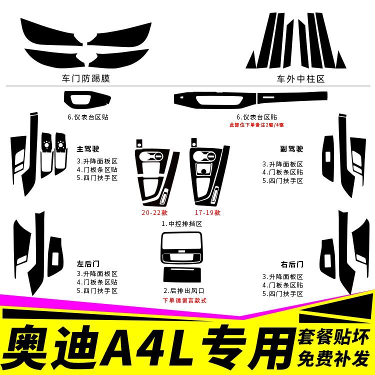 适用于17-19款奥迪a4l改装内饰贴纸A5中控台排挡装饰改色汽车贴膜
