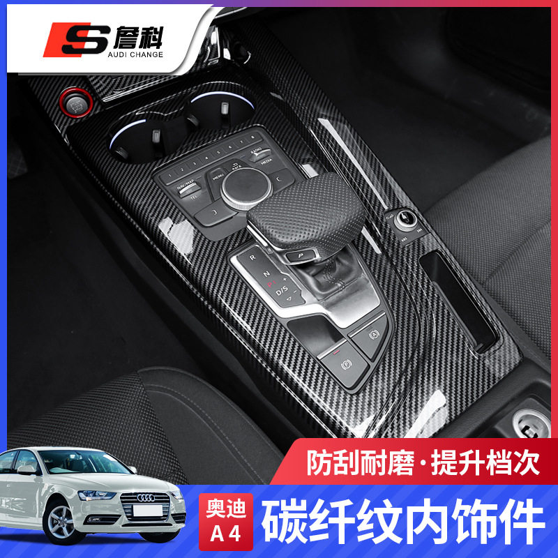 适用于17至25款奥迪A4L改装内饰 中控排挡框升窗面板碳纤纹装饰贴