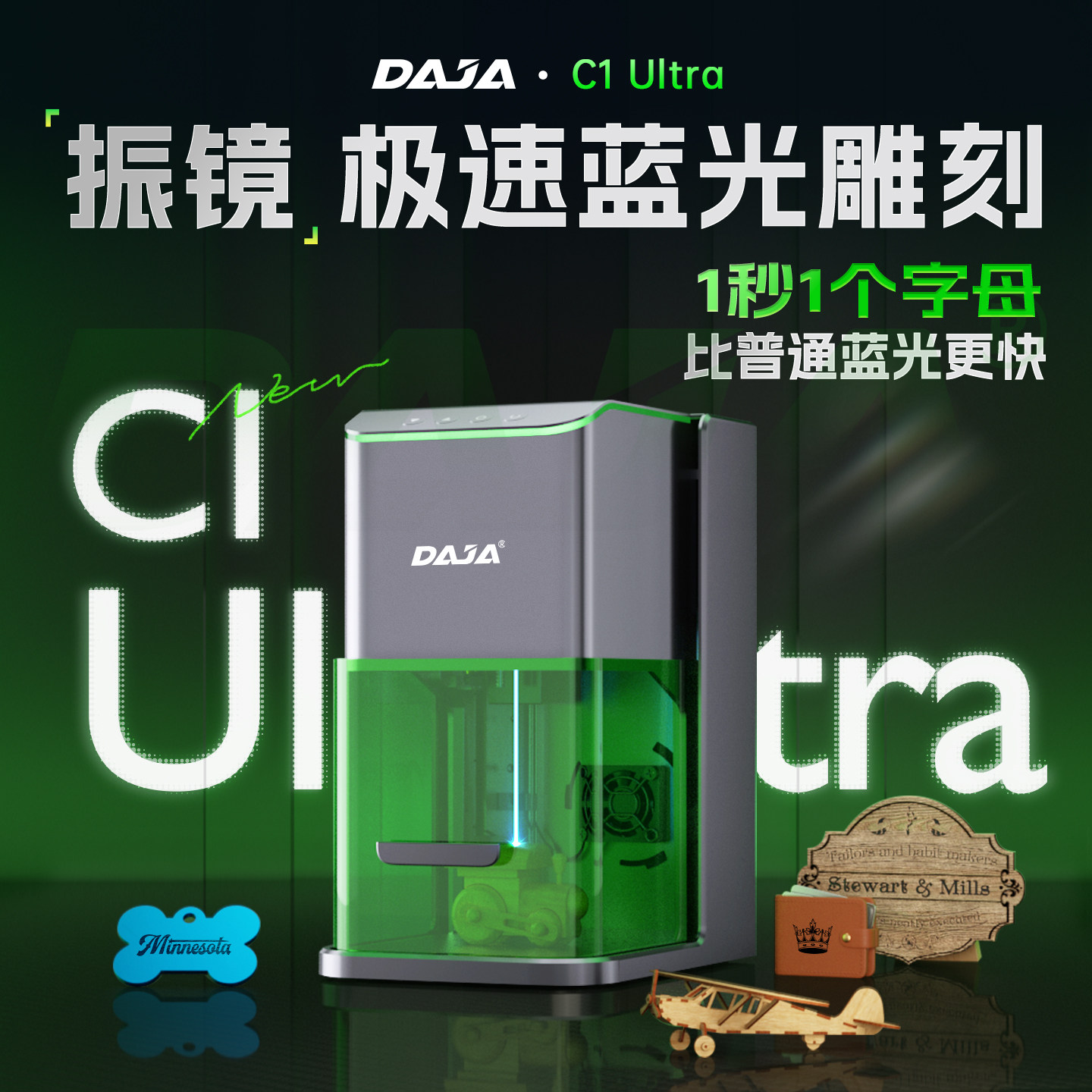 DAJA C1Ultra小型激光打标机便携家用刻字打标机竹木皮革镭射机