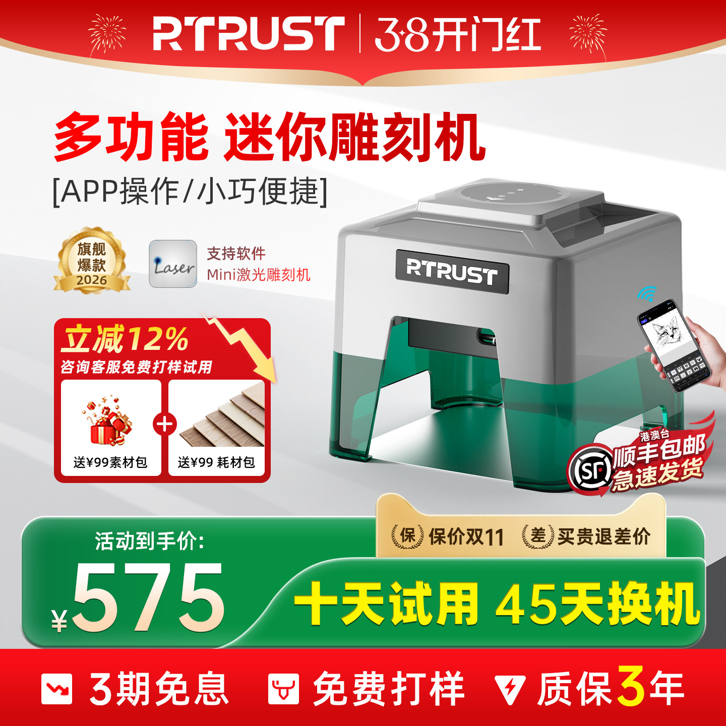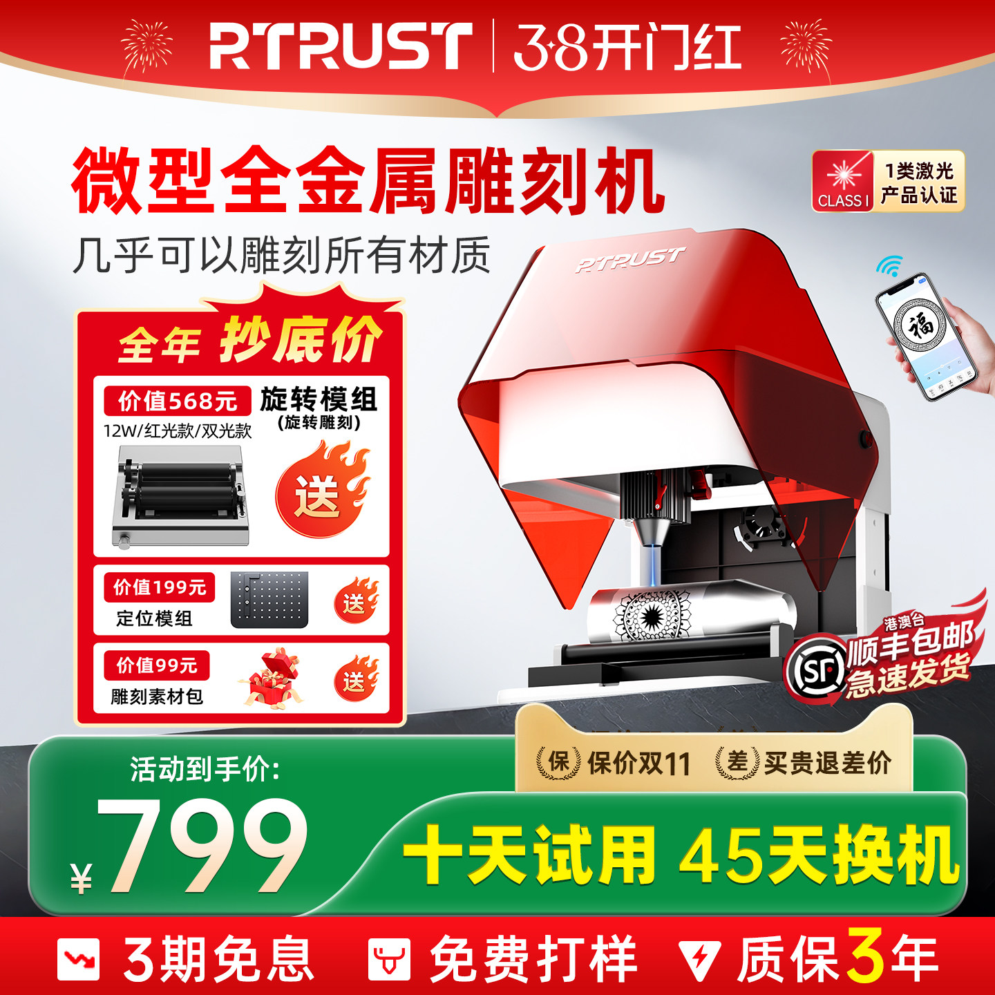 RTRUST小型激光雕刻机便携式迷你台式打标机全自动刻字微型打码机