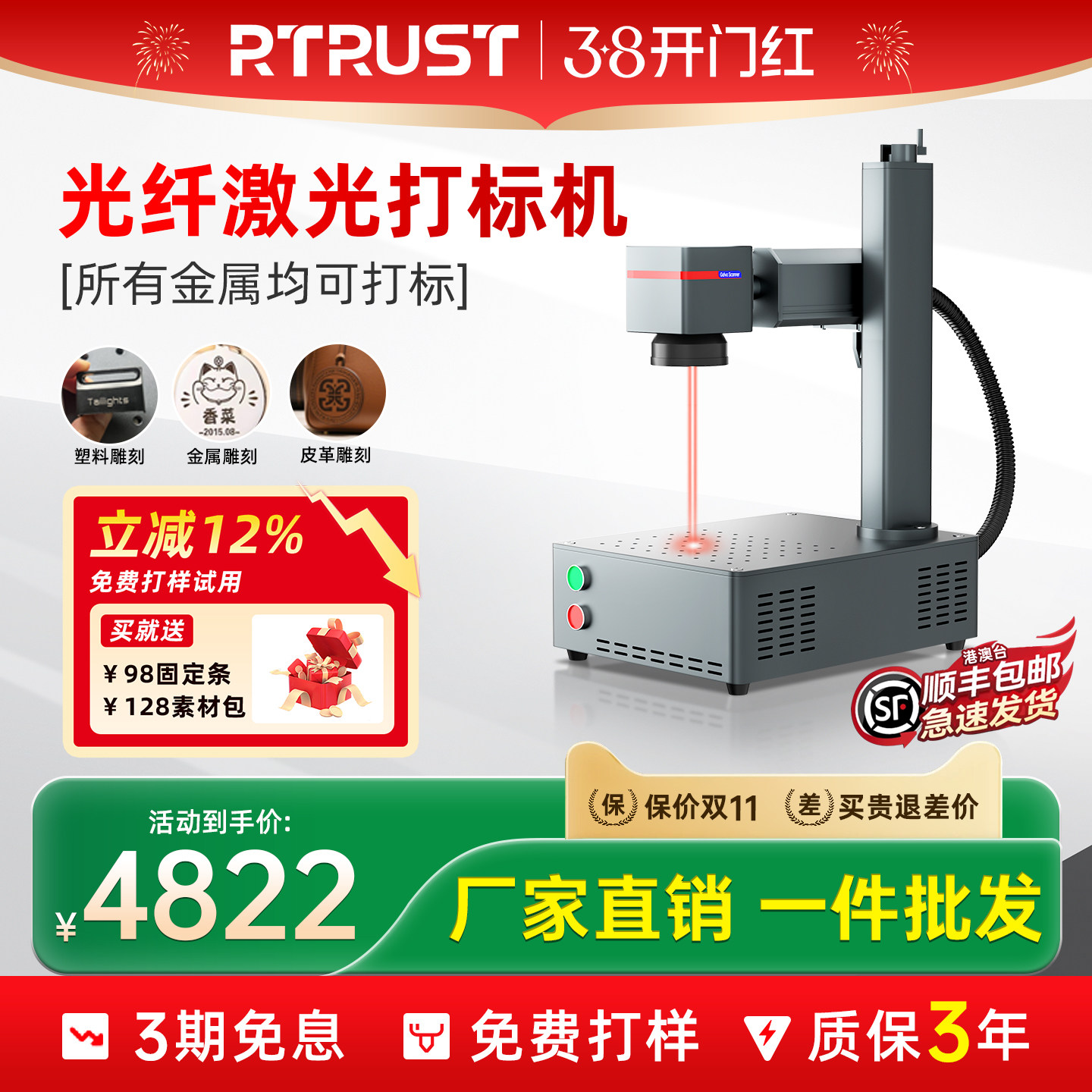 RTRUST激光打标机不锈钢铭牌金属塑料打码机光纤镭射刻字雕刻机