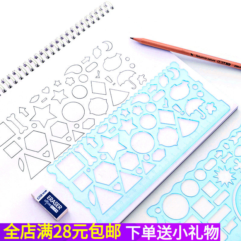 4件套尺万花尺绘图画手抄报模板镂空尺子洞洞曲线小学生文具花边