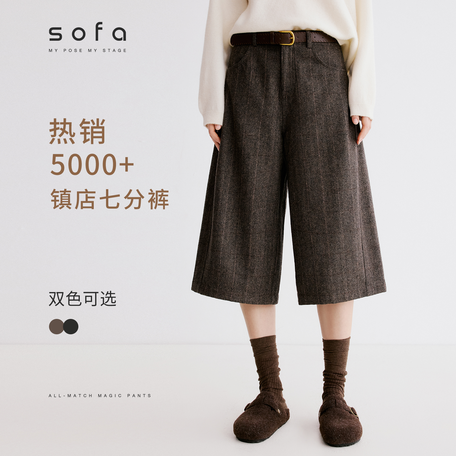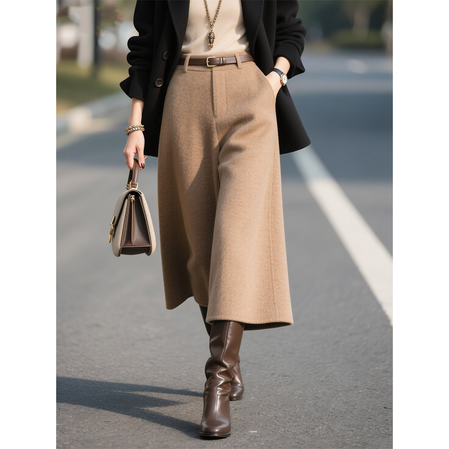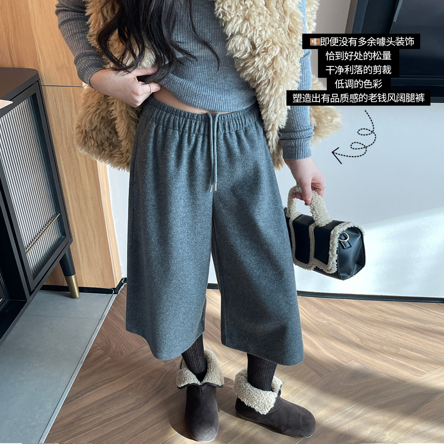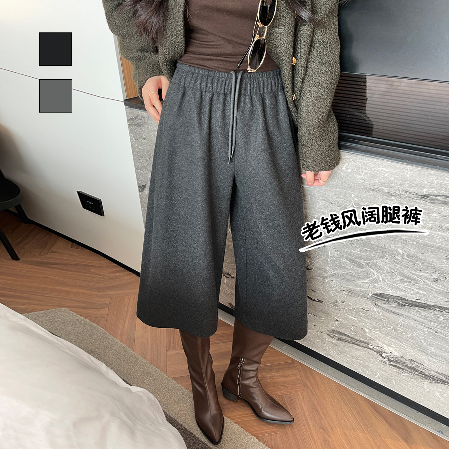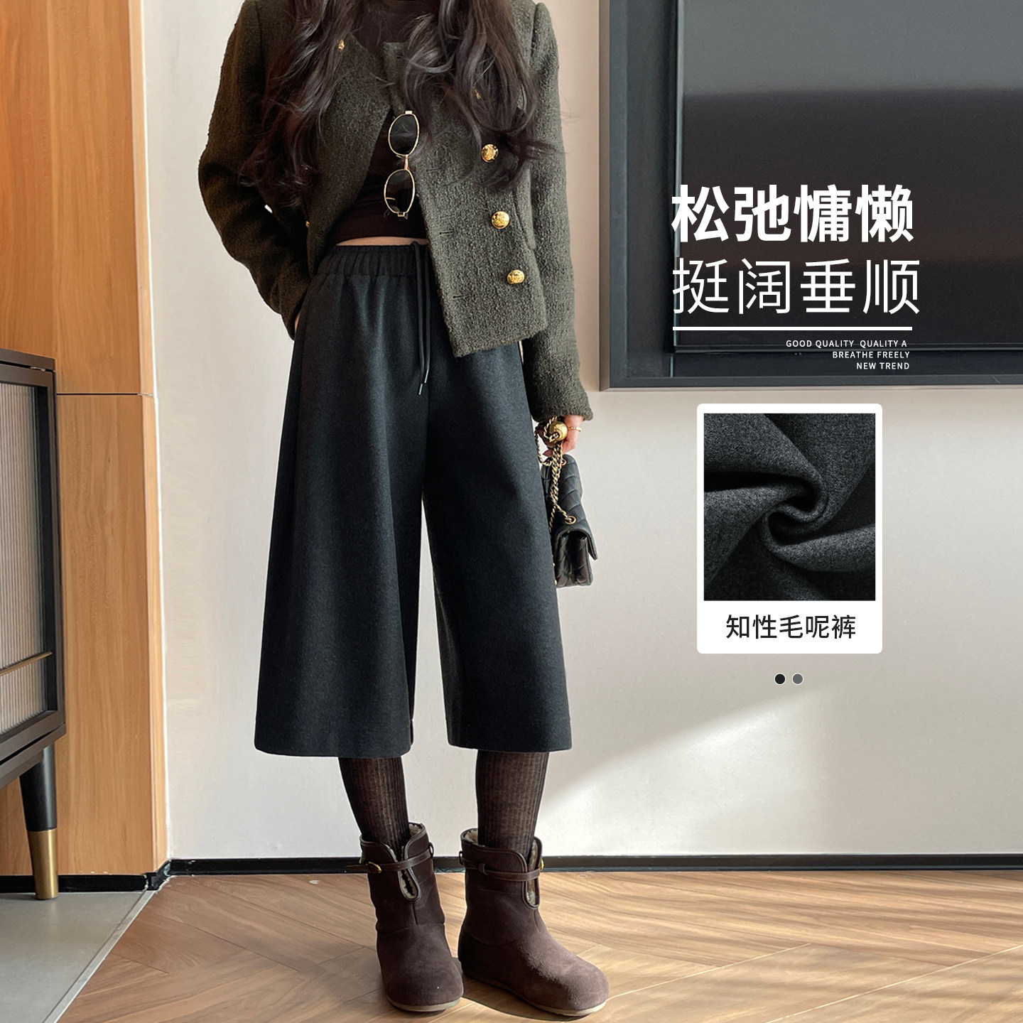 - 秋冬韩版高腰九分阔腿裤女毛呢