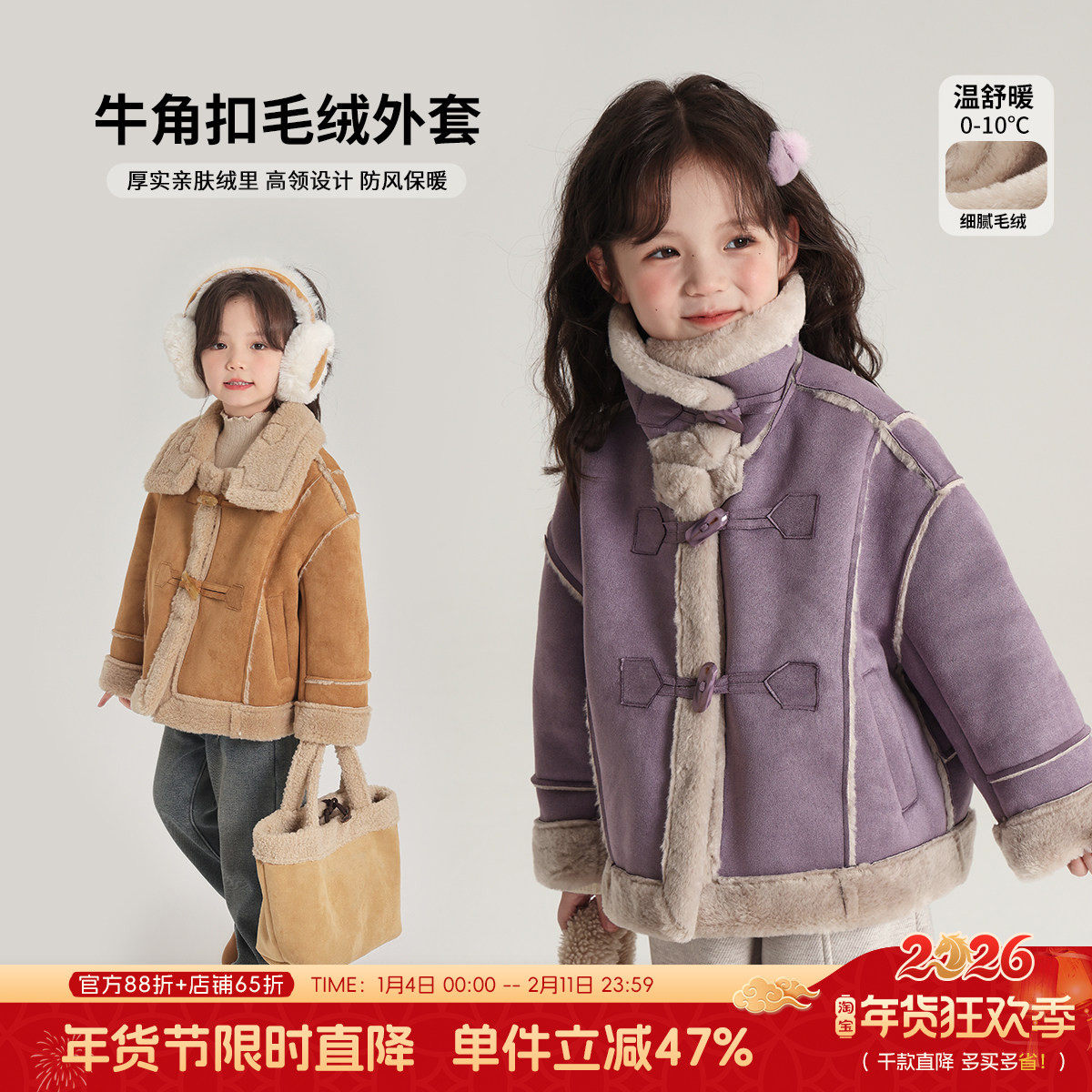 布丁哈鲁童装冬装女童上衣2026冬季新款儿童加绒加厚皮毛一体外套