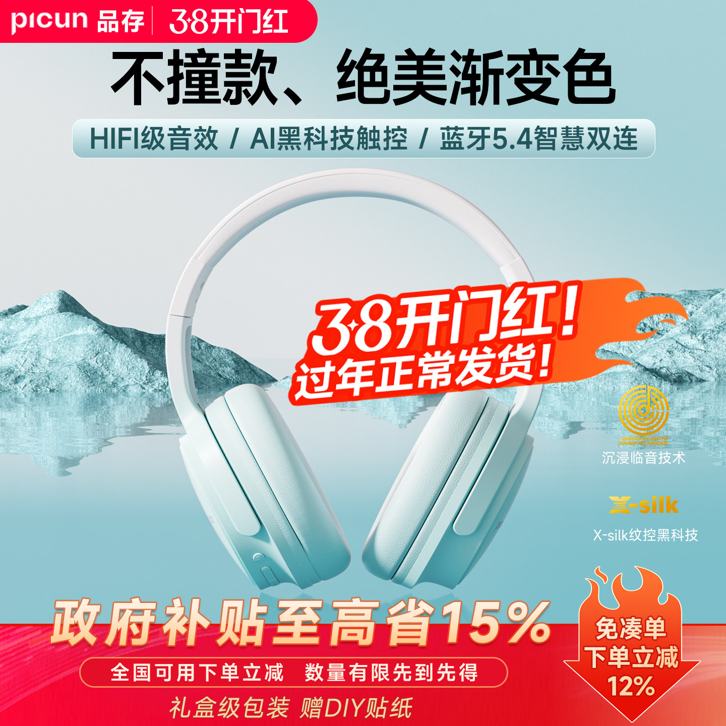 Picun品存蓝牙耳机头戴式无线降噪女生有线电脑耳麦游戏带麦Queen