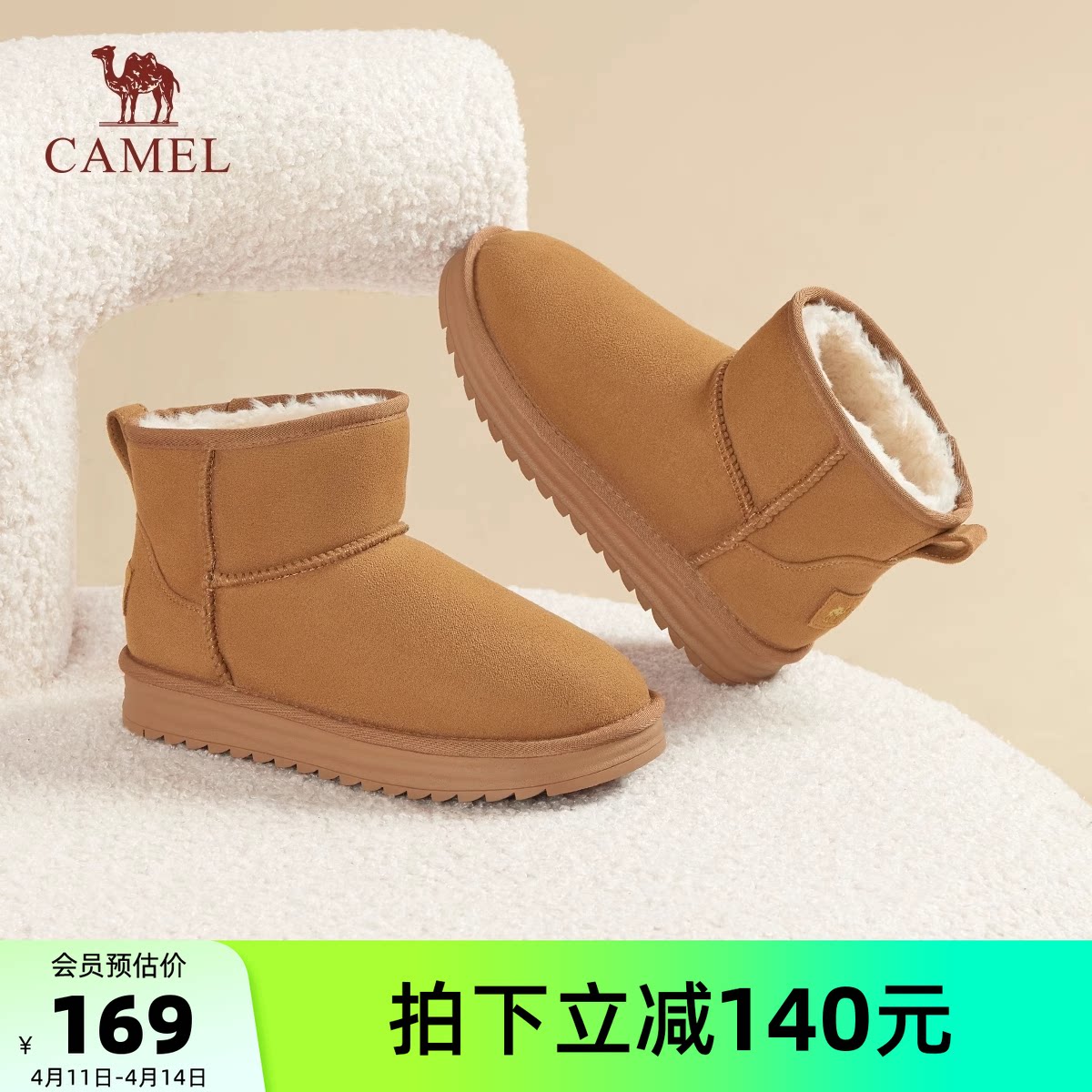 骆驼女鞋2025冬季新款加绒保暖雪地靴女款加厚东北棉鞋休闲短靴子