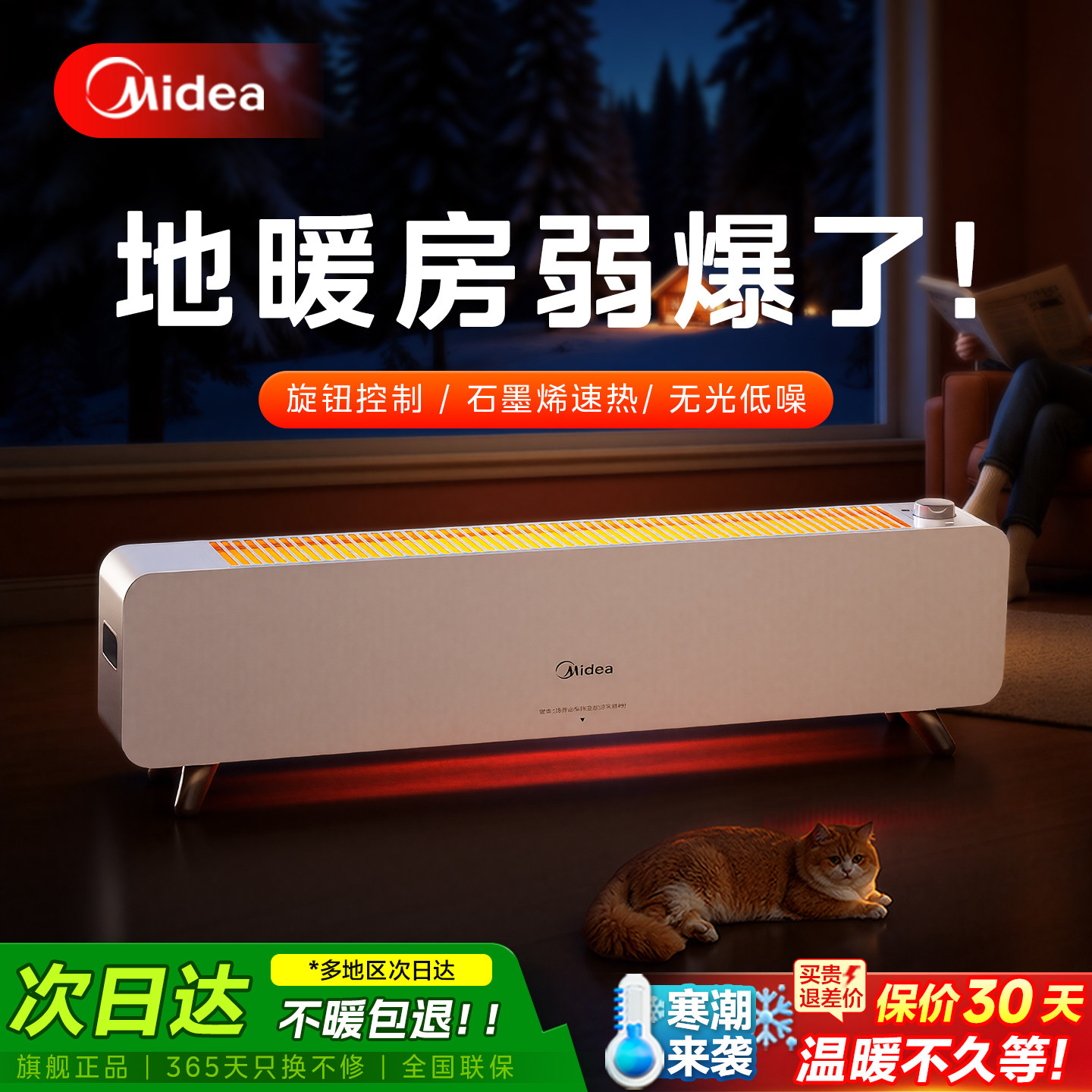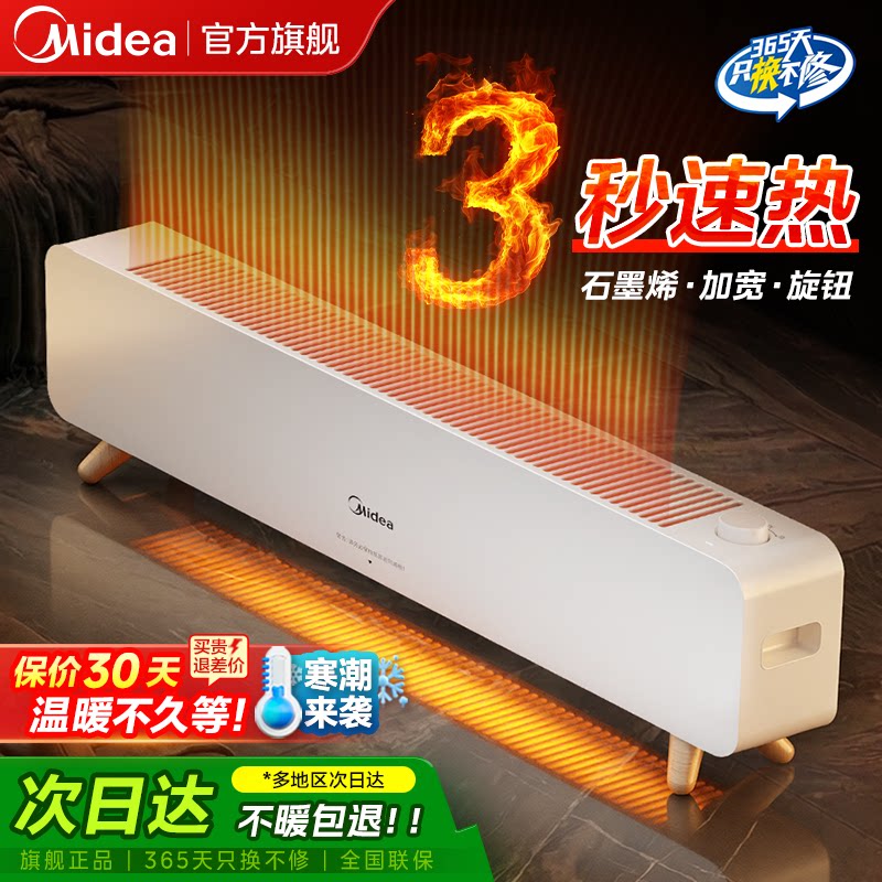 美的踢脚线取暖器石墨烯家用节能神器大面积电暖器电暖气2026新款