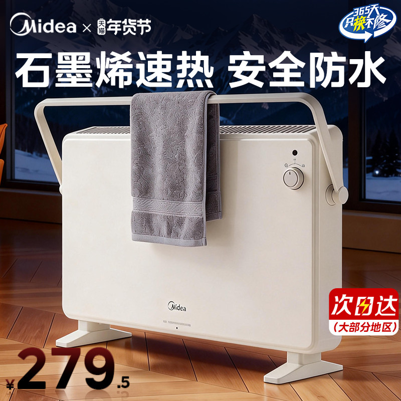 美的取暖器家用浴室防水石墨烯电暖气婴儿节能欧式快热炉2026新款