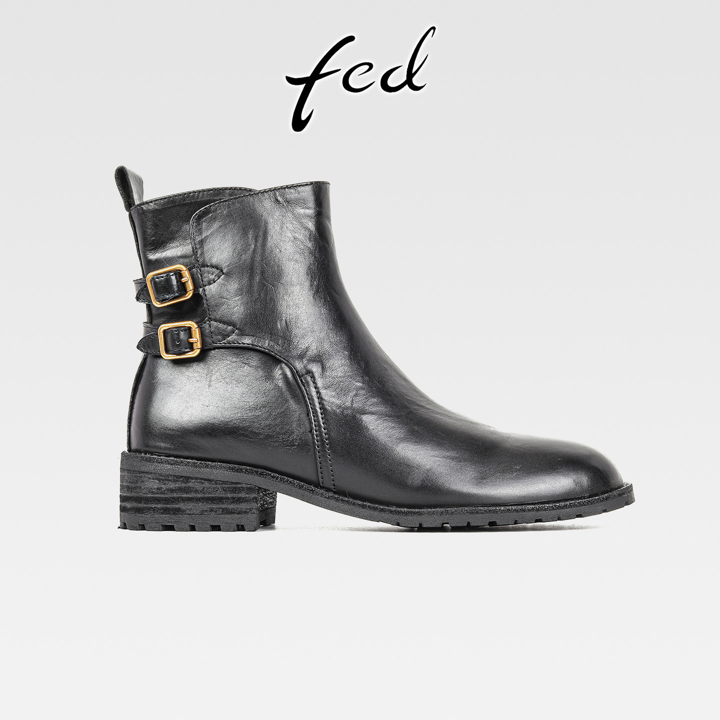 - 粗跟短靴 圆头