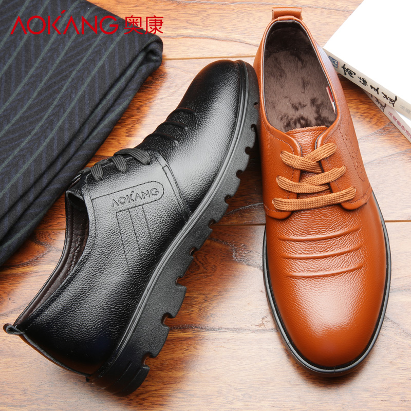 奥康男鞋真皮2025秋冬季加绒保暖男士休闲棉皮鞋防滑软底皮鞋男