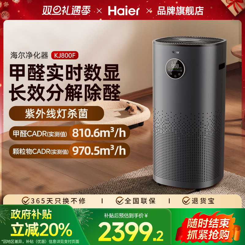 海尔空气净化器分解除甲醛家用卧室除烟雾霾异味宠物净化机负离子