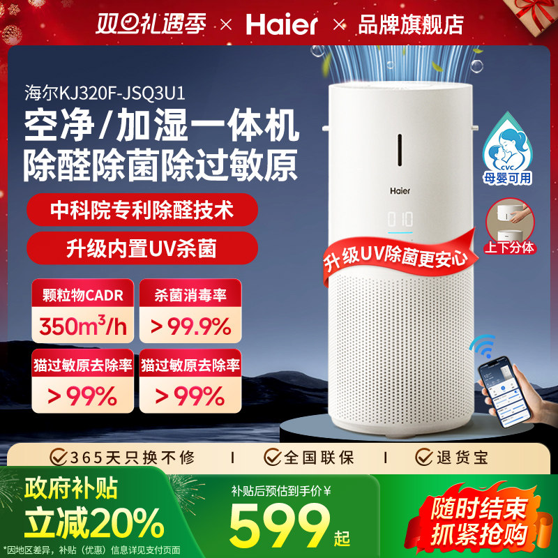 海尔空气净化器无雾加湿净化一体机除醛除异味净化KJ320F-JSQ3U1