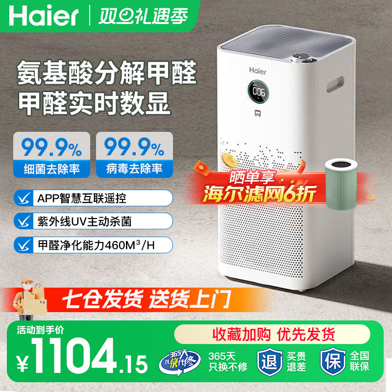海尔空气净化器氨基酸除甲醛家用办公室除霾除病毒UV杀菌净烟味
