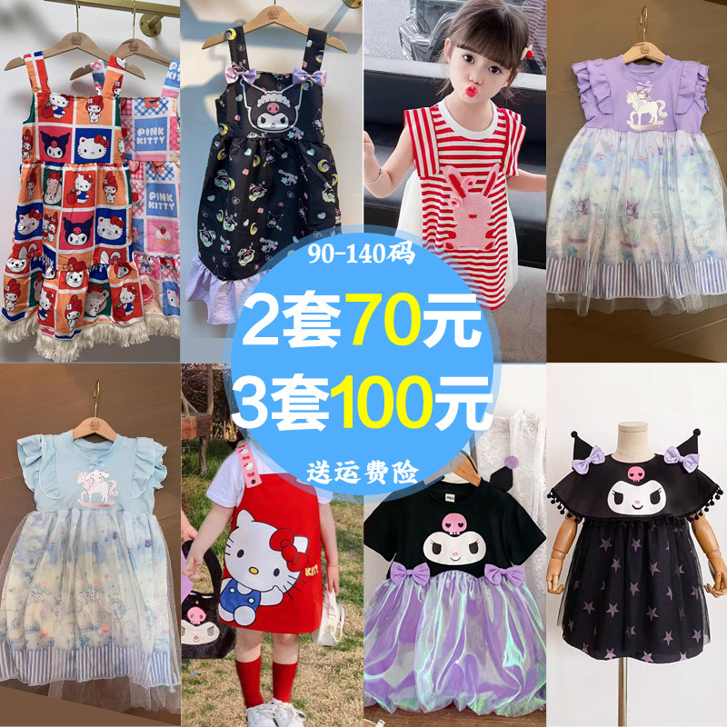 女童装库洛米连衣裙潮夏季中长裙蓬蓬裙摆 韩版儿童卡通吊带长裙