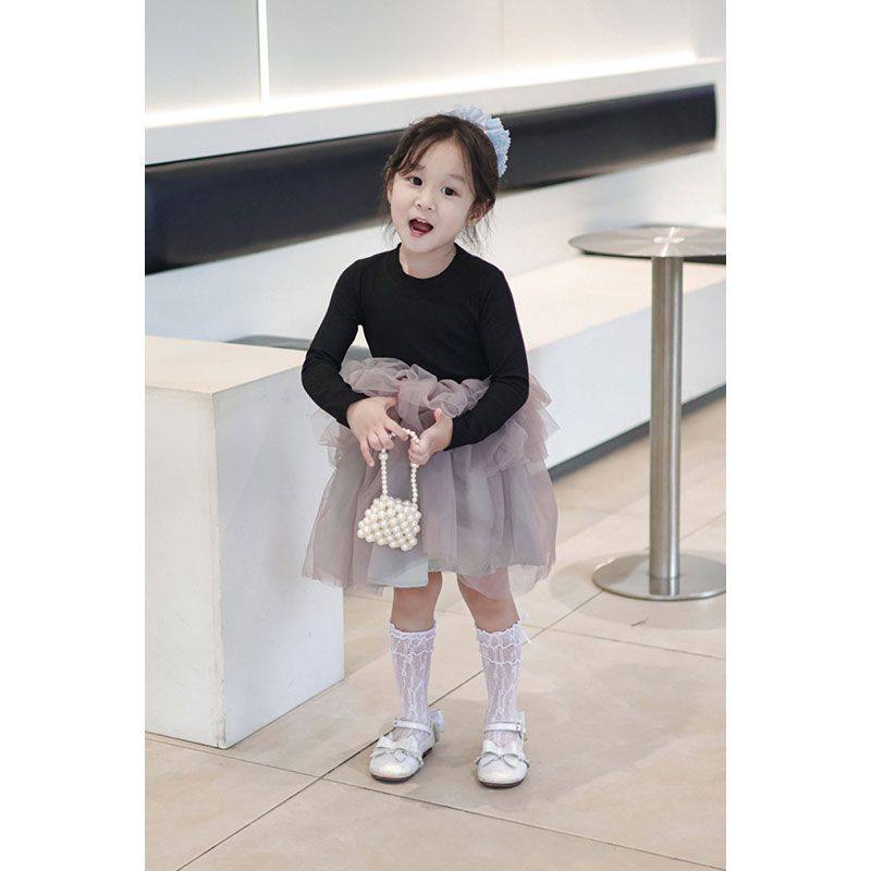 女童纱裙黑色长袖网纱连衣裙2026春秋洋气潮流公主风蓬蓬裙中长裙