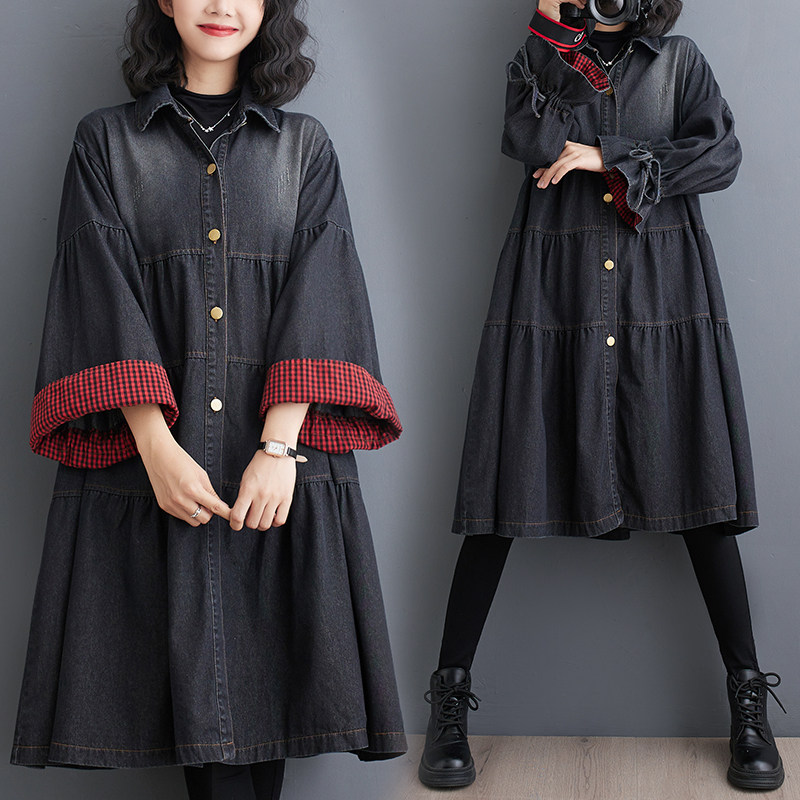 实拍牛仔春款蓬蓬裙2024年早春款休闲宽松显瘦牛仔中长款连衣裙