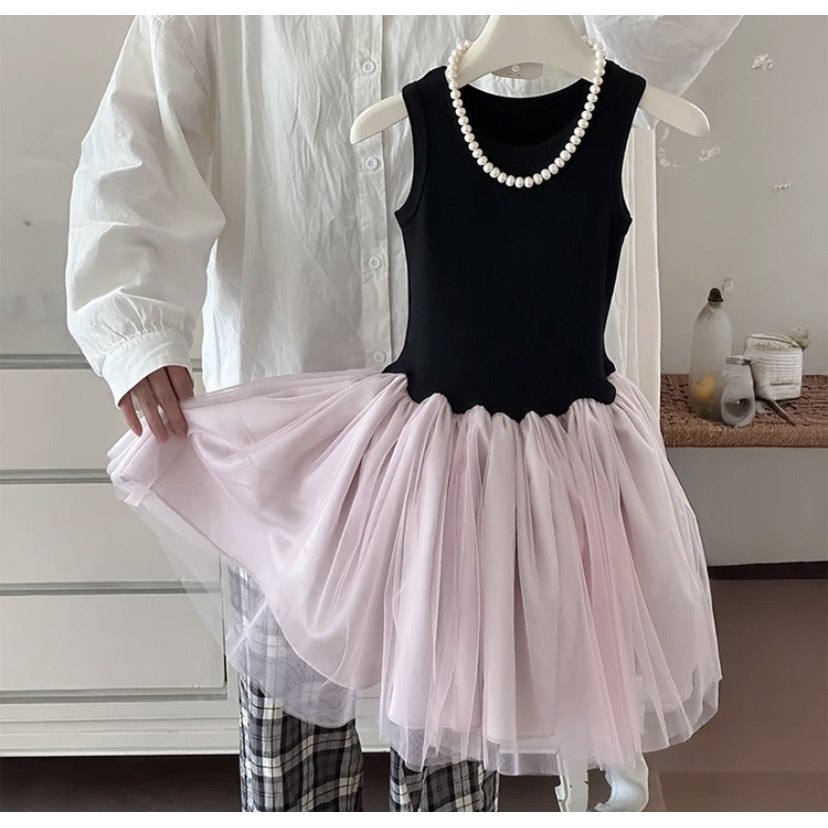 女童吊带网纱裙宝宝连衣裙儿童舞蹈裙中小童螺纹背带中长款蓬蓬裙
