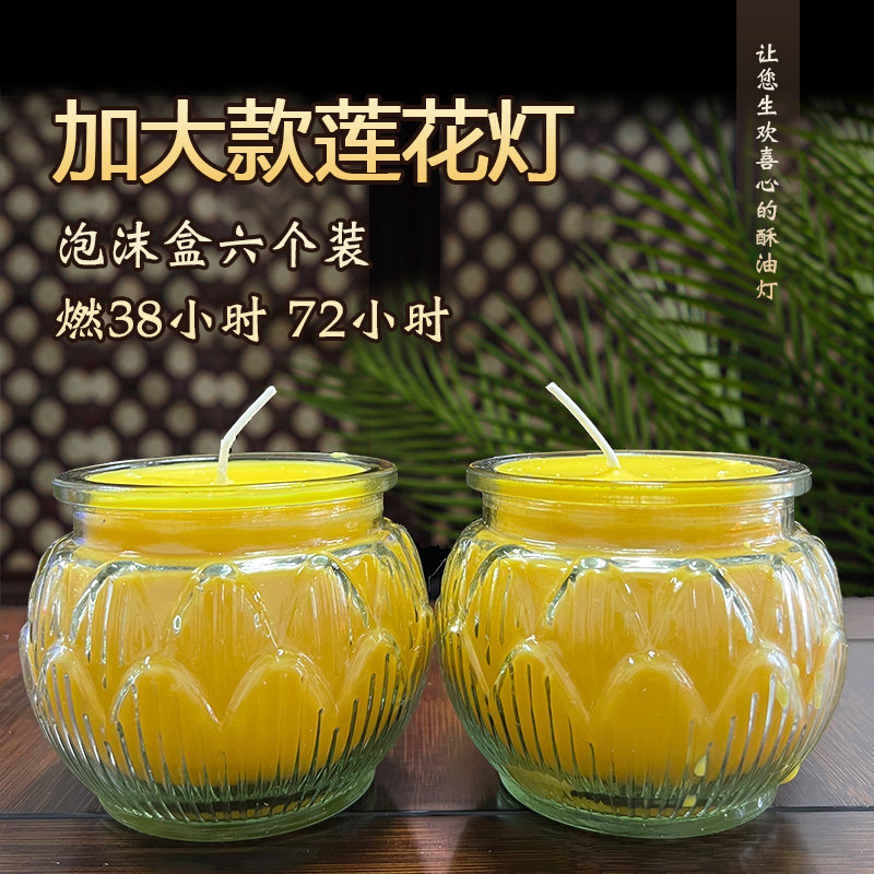 健康平口莲花酥油灯厚玻璃酥油蜡烛整箱活动价缘益坊酥油灯24小时