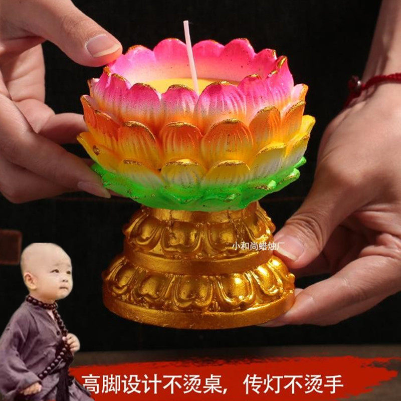七彩莲花灯酥油灯无黑烟供佛荷花灯4小时祈愿家用无烟蜡烛长明灯