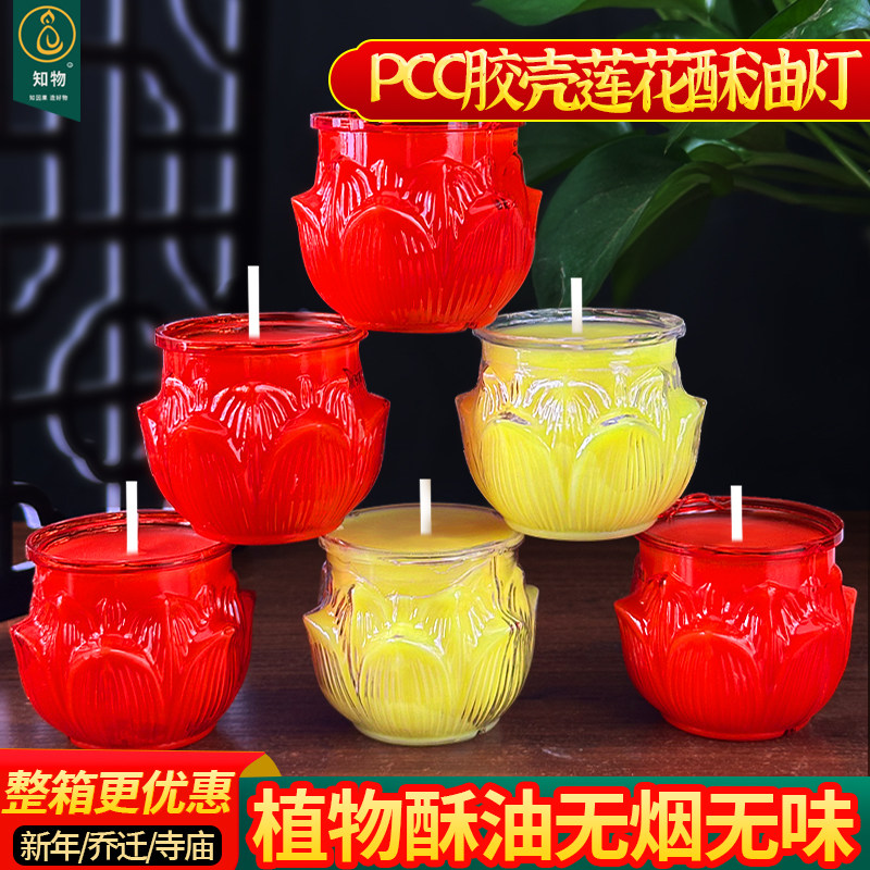 知物酥油灯供佛灯雕花红壳12小时莲花灯酥油灯佛前供灯家用蜡烛灯
