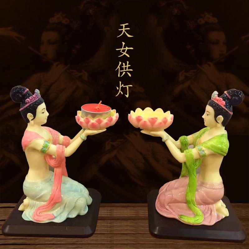 缘益坊酥油灯仙女供灯佛堂供佛飞天女莲花灯酥油灯灯座蜡烛台1个