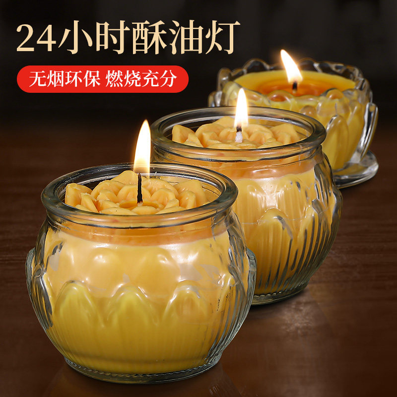 酥油灯24小时无烟苏油灯菩萨莲花灯佛供灯家用供奉香薰蜡烛佛前灯