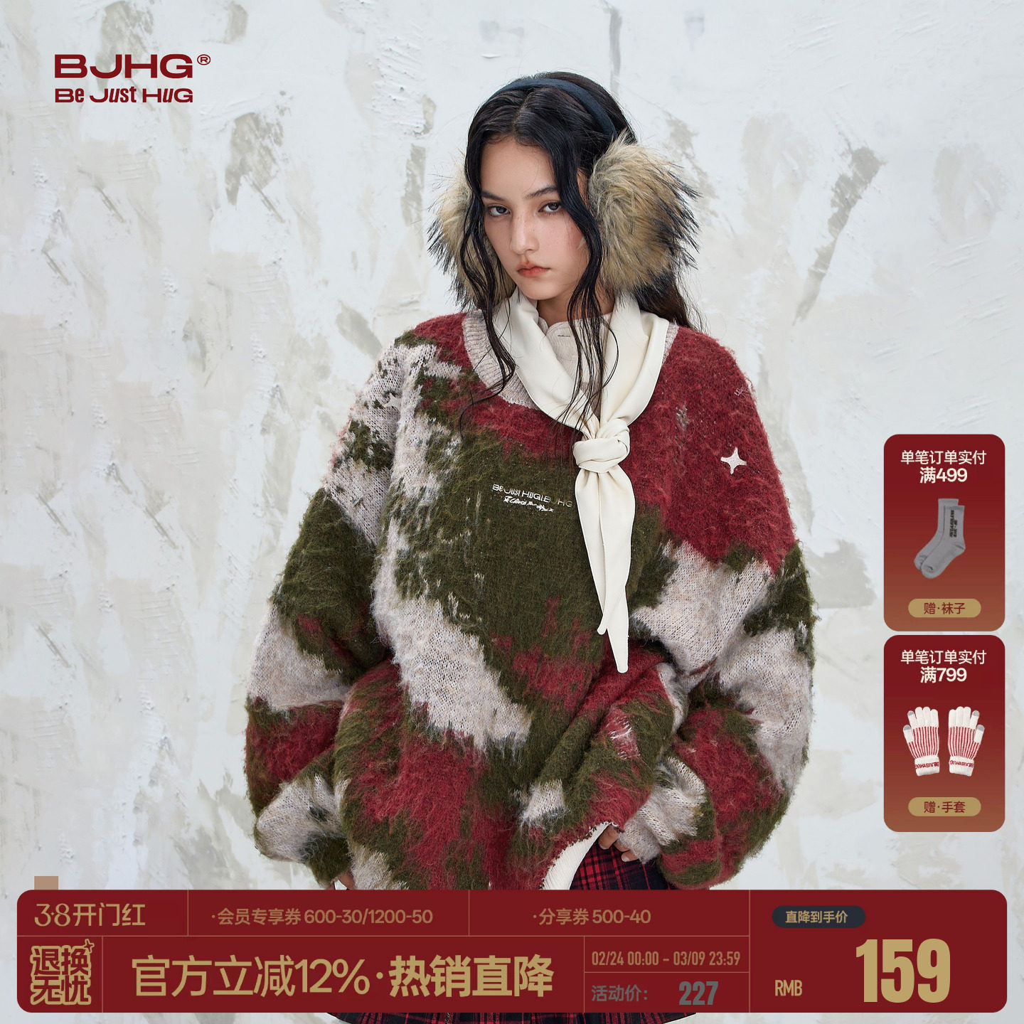 BJHG不计后果马年新年毛衣男款冬美式刺绣针织衫外套情侣装毛衣女