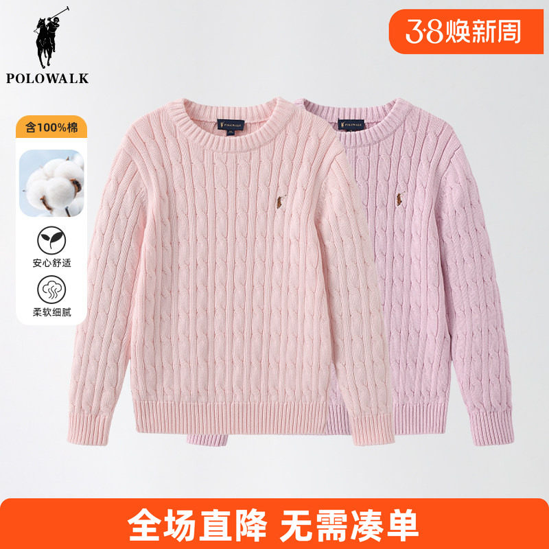 POLOWALK童装 儿童针织衫圆领毛衣刺绣2025秋冬新款女童上衣