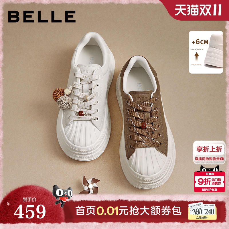 百丽厚底贝壳头小白板鞋女2025新款增高休闲面包运动鞋子E7K1DCM5