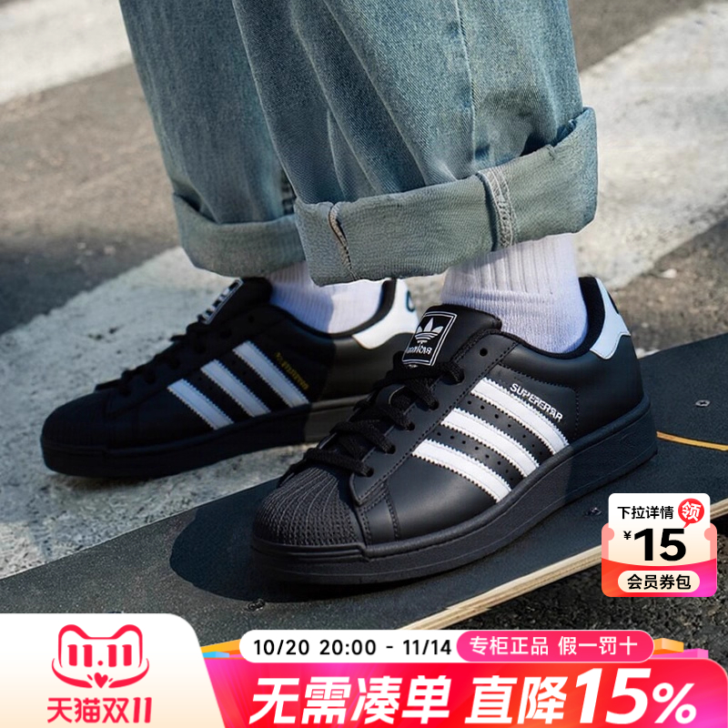 阿迪达斯官网鞋子男鞋三叶草女秋季新款黑色金标贝壳头休闲鞋板鞋