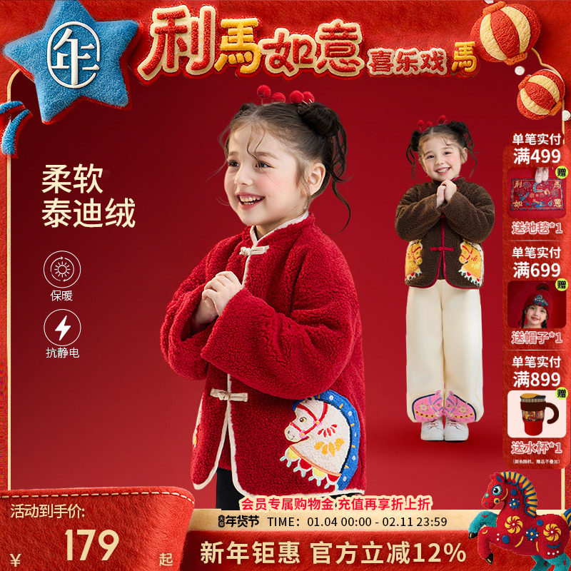真维斯女童冬装外套2025新款冬款加绒加厚保暖大童羊羔绒儿童上衣