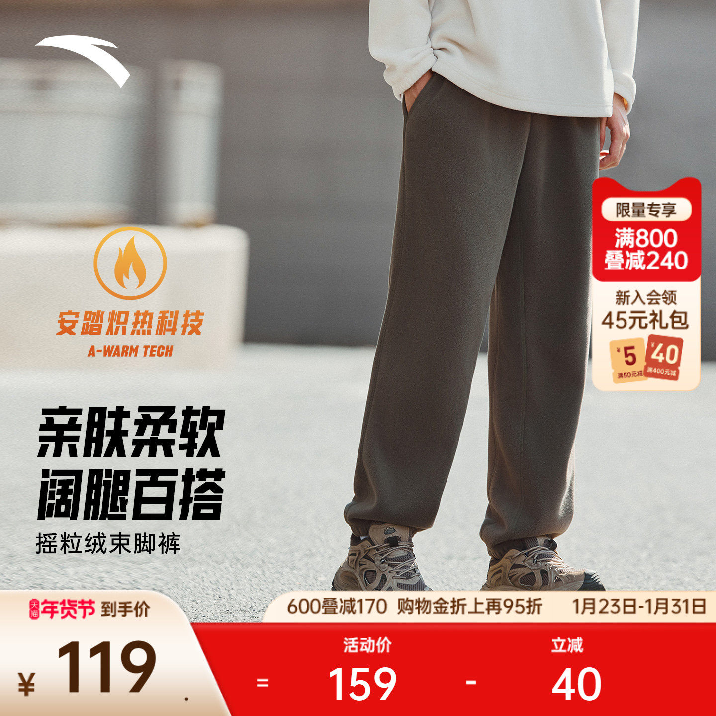 安踏摇粒绒双面抓绒长裤男裤2025冬季新款宽松加绒加厚束脚卫裤子