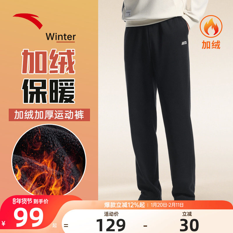 安踏运动裤男裤加绒裤子冬季新款男士加厚长裤保暖卫裤直筒休闲裤