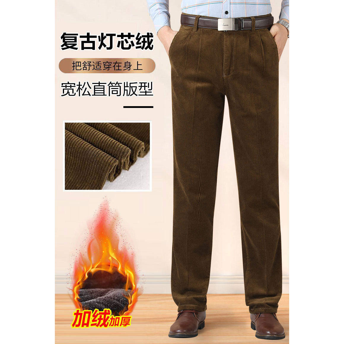 下单立减60元!冬季加绒加厚灯芯绒中老年人男裤直筒条绒裤Z1