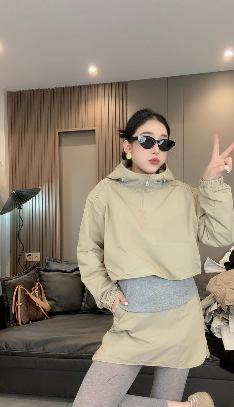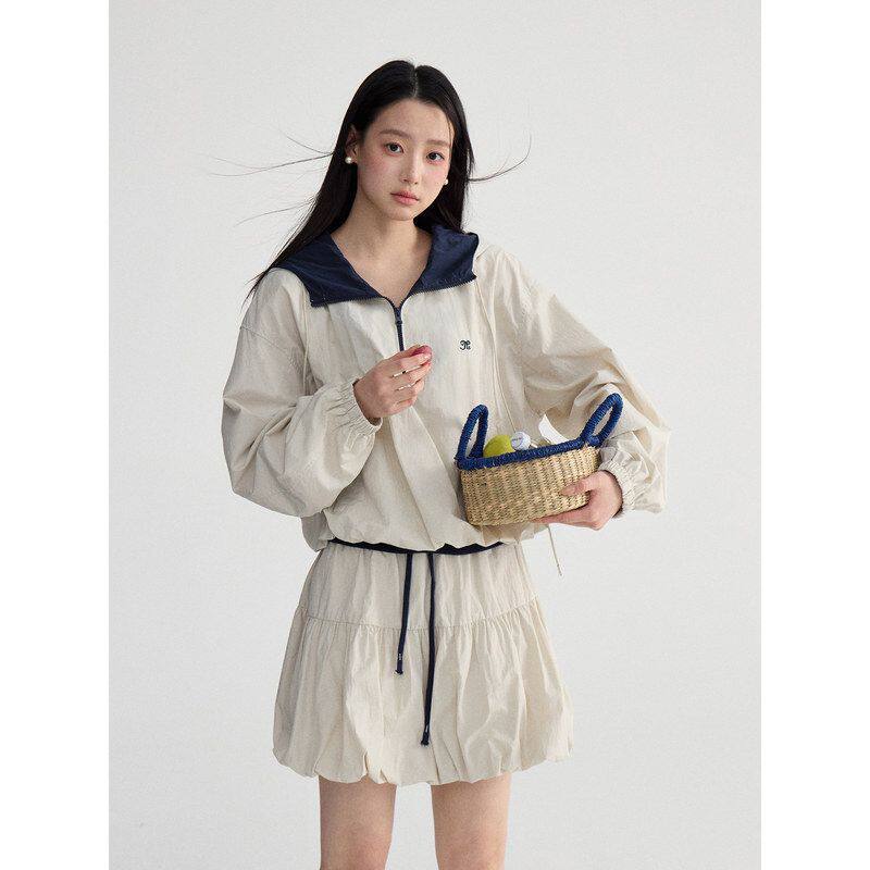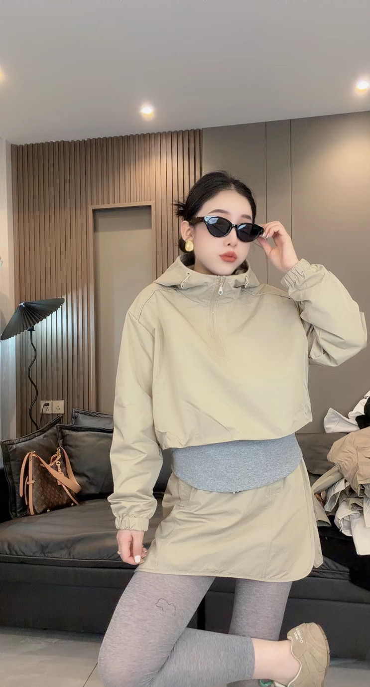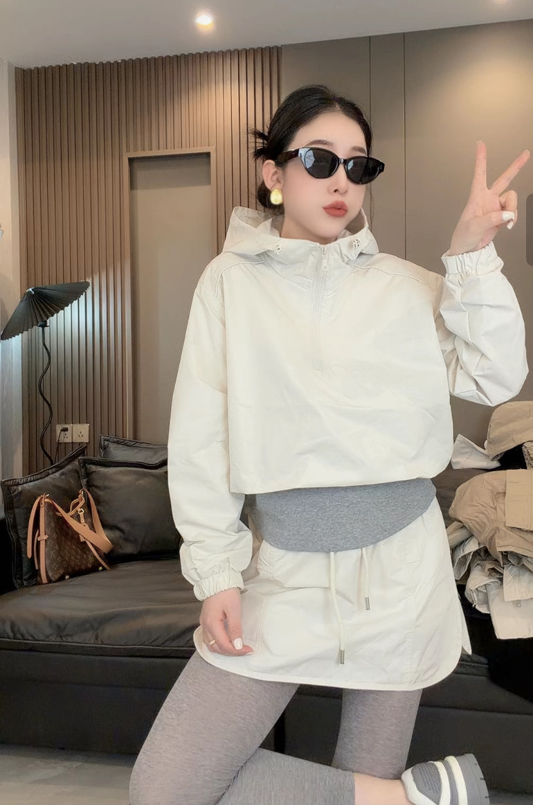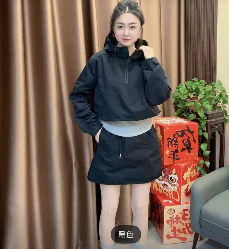 【歌铭】户外休闲撞色连帽冲锋衣+抽绳花苞半身裙两件套装N0079D