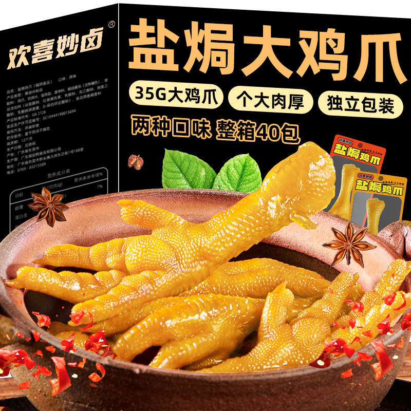 欢喜妙卤盐焗鸡爪广东特产凤爪卤味鸡脚客家风味休闲即食零食小吃