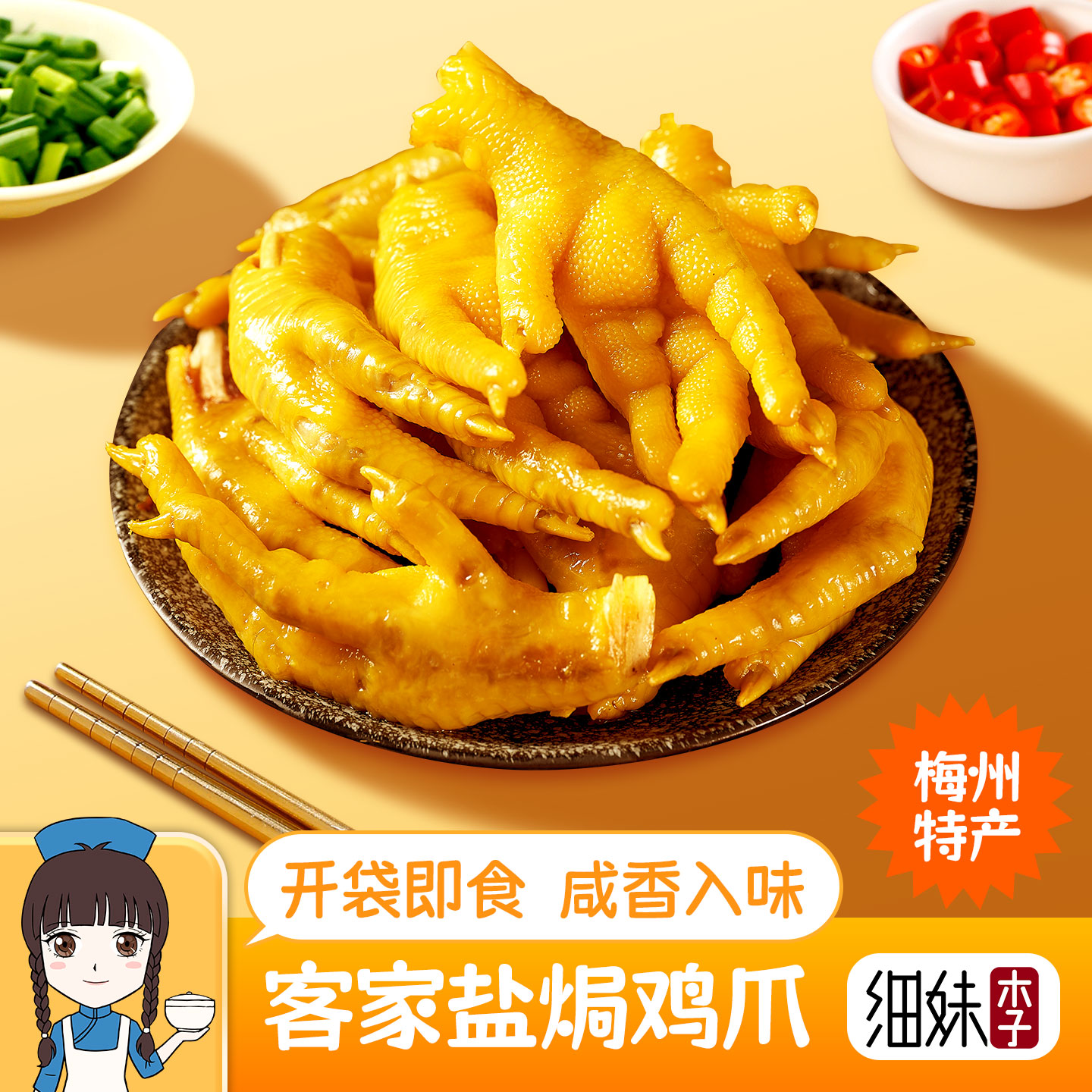 盐焗鸡爪广东梅州鸡爪客家特产凤爪鸡脚休闲小吃网红零食卤味熟食
