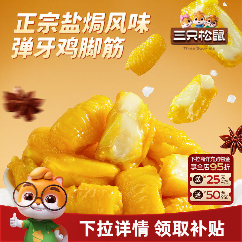 三只松鼠_盐焗鸡脚筋休闲零食鸡爪筋小吃特产解馋零食鸡脆骨熟食