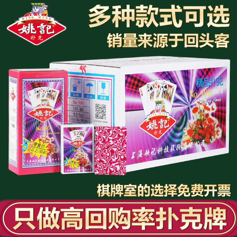 姚记扑克牌100副整箱正点扑克响乐飞牌朴克棋牌室用便宜纸牌包邮