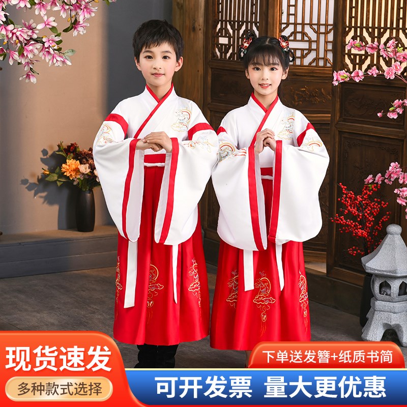 儿童汉服国学服女童古装中国风男童唐装学生表演书童三字经演出服