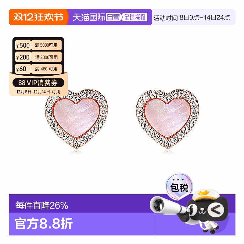 APM Monaco粉母贝爱心耳钉女生玫瑰金耳环轻奢感送人生日圣诞礼物