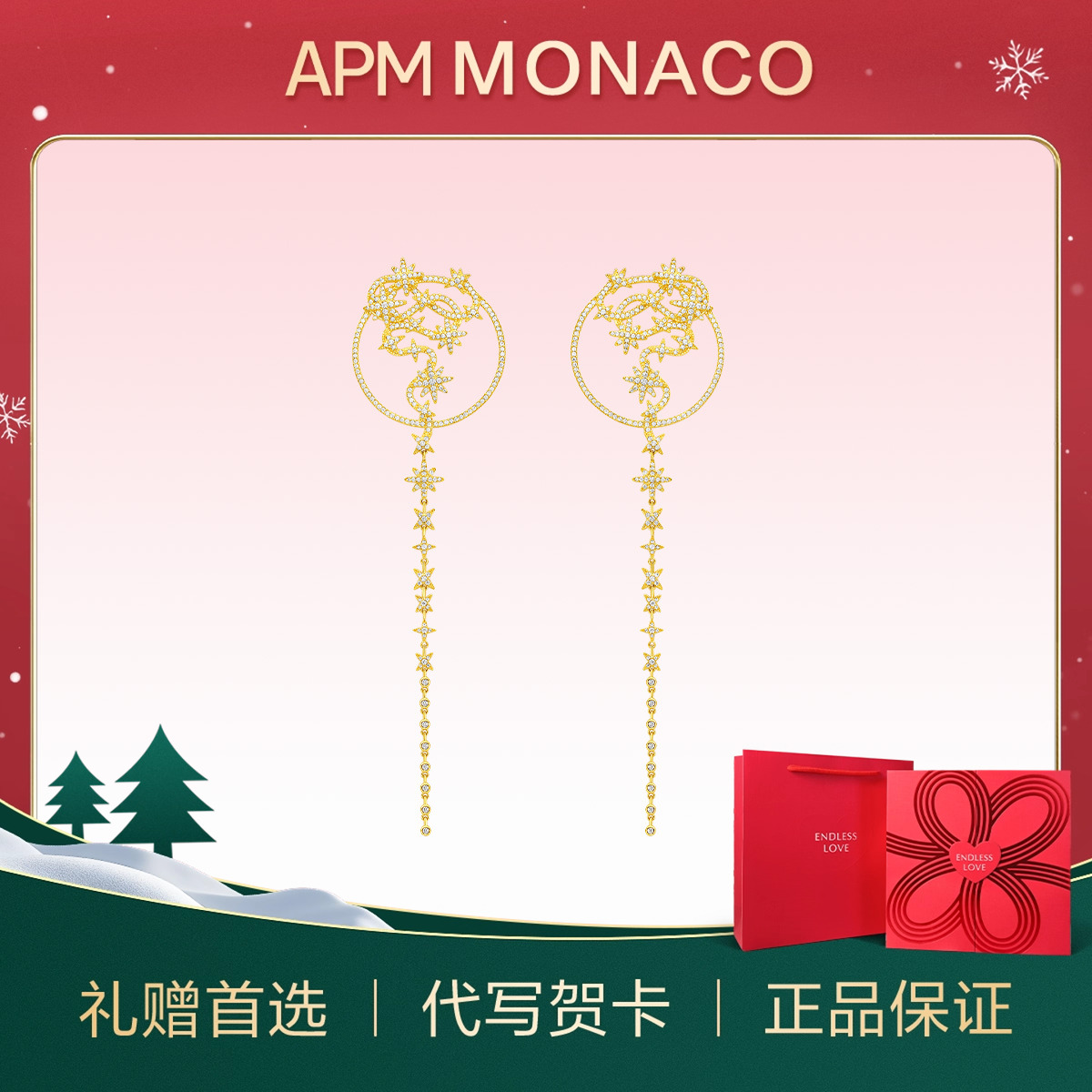 APM Monaco流星垂坠金色耳环耳饰气质轻奢流苏送女友生日礼物耳钉