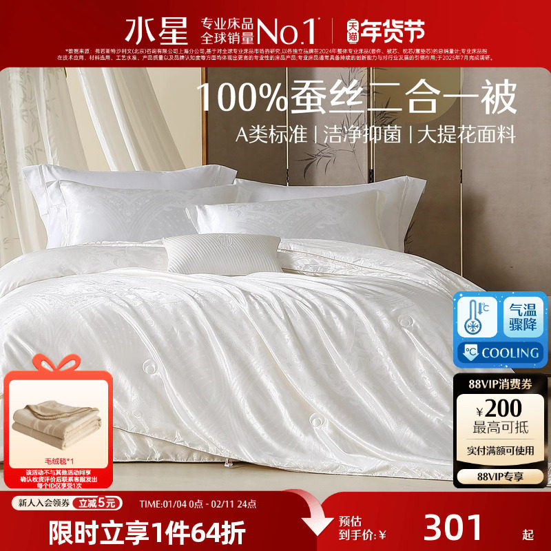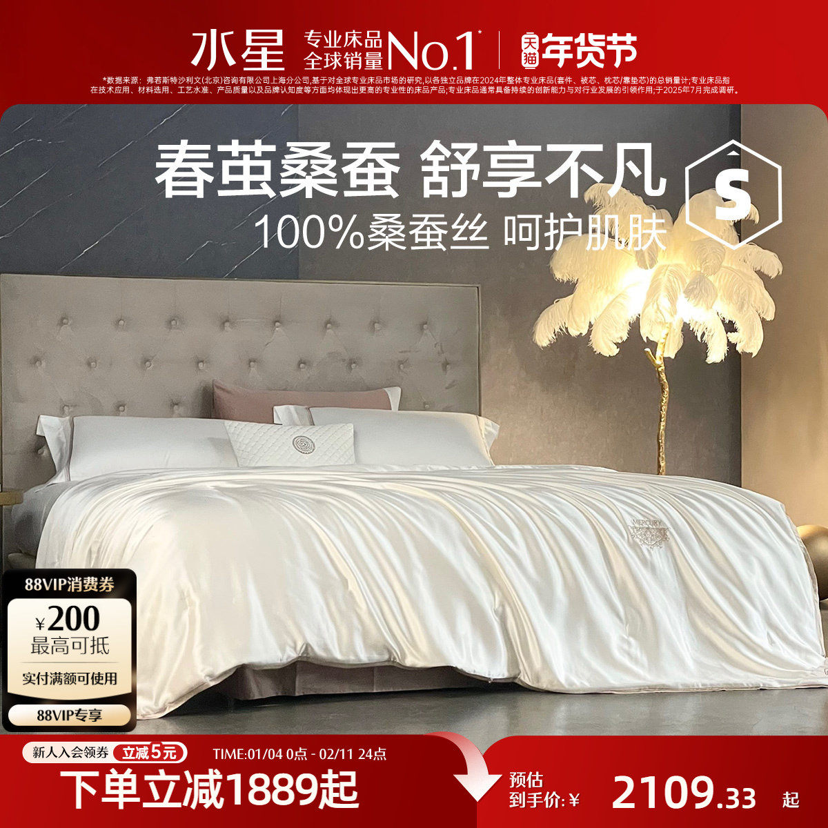 水星家纺被子蚕丝被100%桑蚕丝春秋被四季通用单双人被子新年礼盒