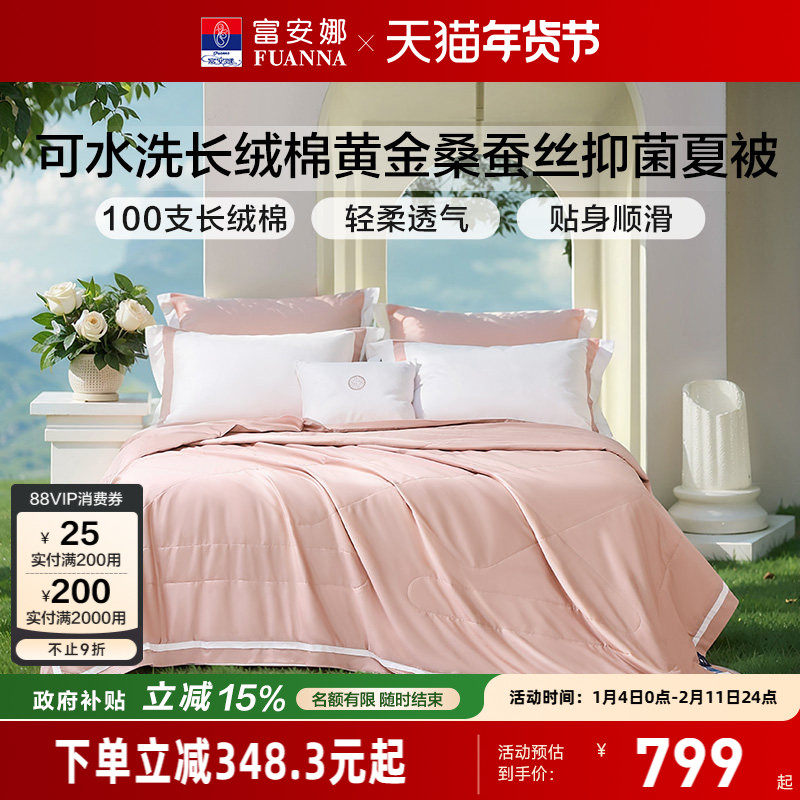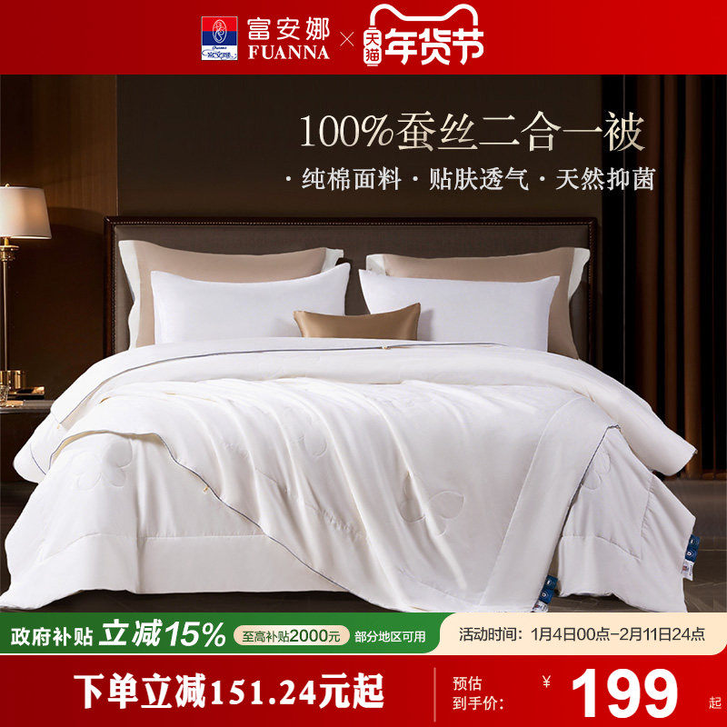 富安娜被子蚕丝被四季通用桑蚕丝被芯空调被二合一子母夏凉被冬被